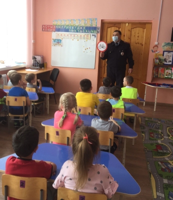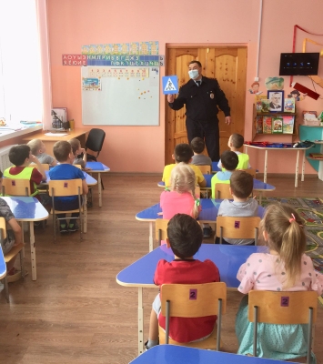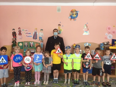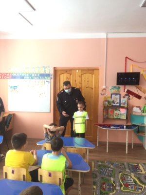 В рамках профилактических мероприятий «Внимание - дети!» в МАДОУ детский сад №6 «Ромашка» прошла встреча детей старших групп с инспектором по пропаганде БДД капитаном полиции Тазиевым Р.А. Роберт Ахтамович рассказал, как правильно нужно переходить дорогу, обсудили с детьми дорожные ситуации, поговорили о том, к чему может привести нарушение ПДД, поиграли в игры «Светофор», «Назови дорожный знак», побеседовали о световозвращающих элементах.
